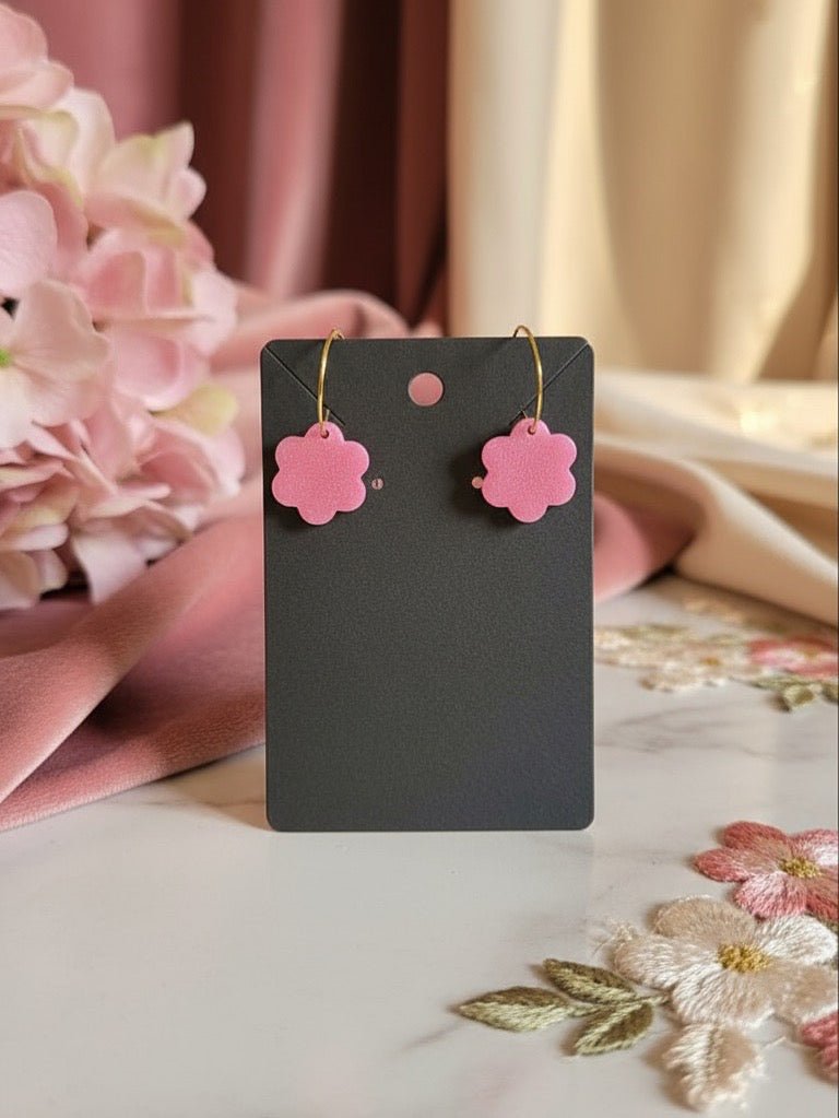 Handgjorda blommiga örhängen i rosa resin .