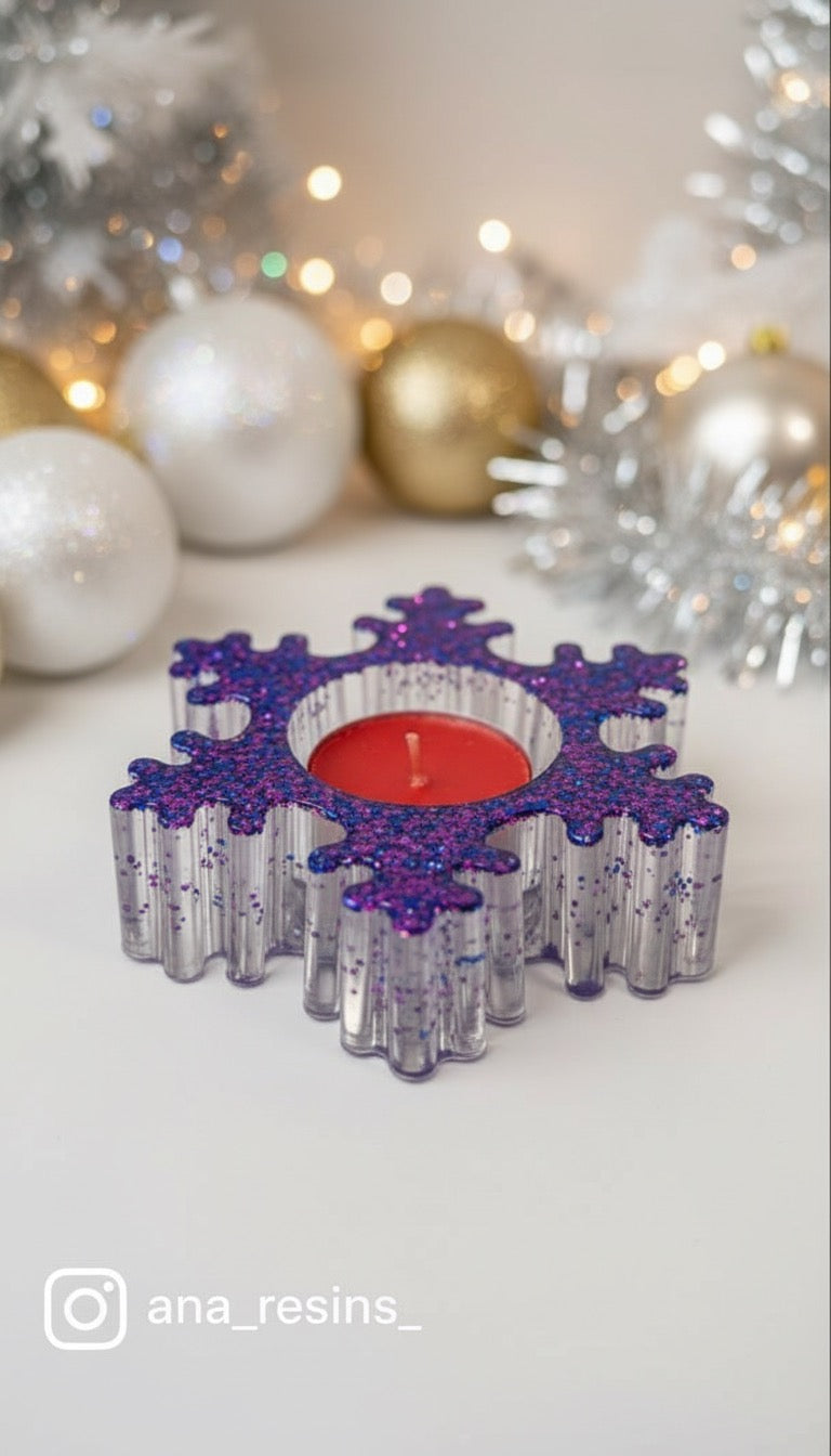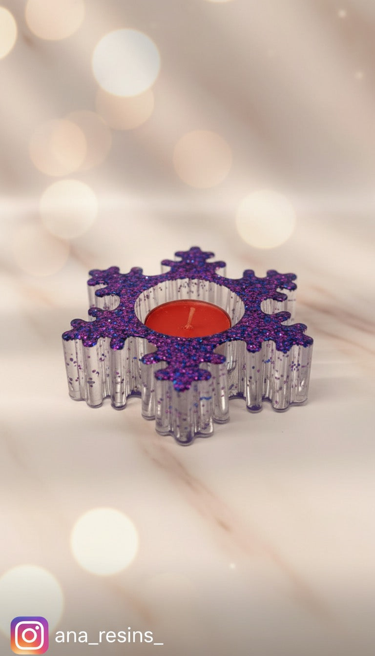 Unik handgjord ljushållare för värmeljus formad som en glittrande snöflinga. Perfekt som en elegant och personlig inredningsdetalj.