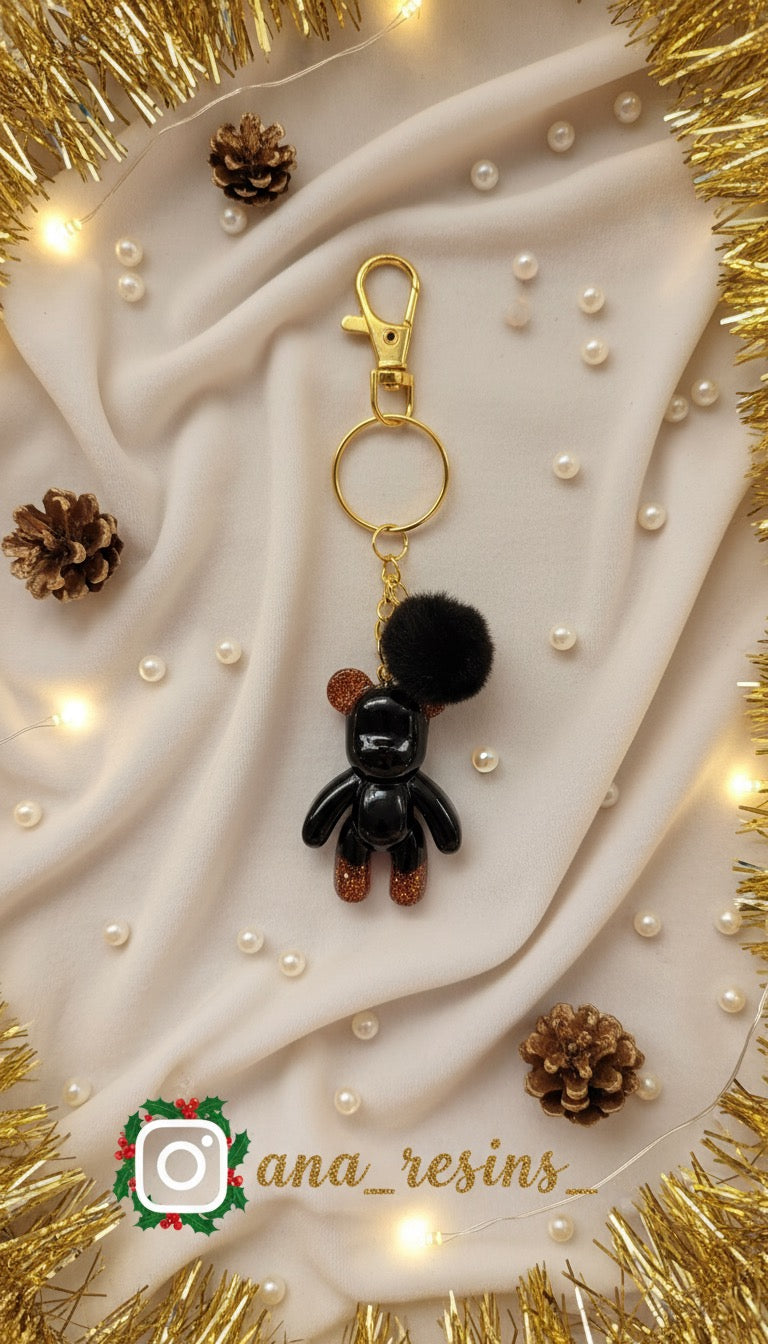 “En exklusiv handgjord nyckelring med en svart nalle björnen som förhöjer varje ögonblick med elegans och unikt hantverk.”