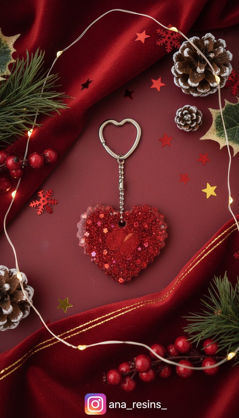 Exklusiv, handgjord hjärtnyckelring med gnistrande glitter och personlig design – varje exemplar är unikt formgivet med omsorg.