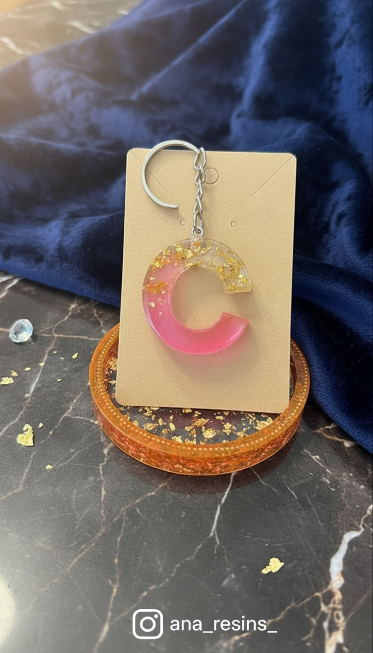 Nyckelring i resin, handgjord med rosa och guldfärgade detaljer för unik design