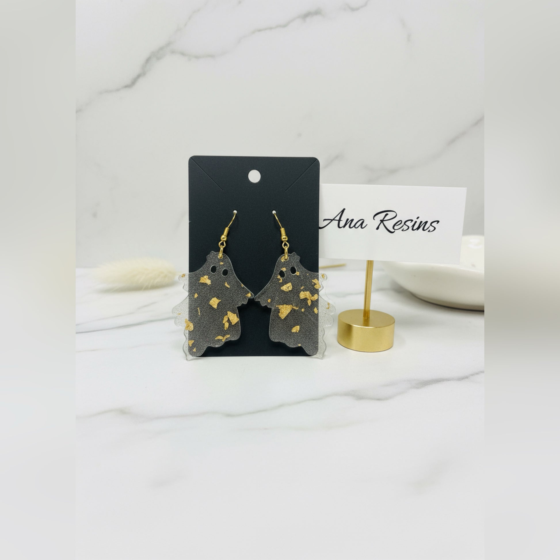 Handgjorda spöken örhängen i cristal resin med guldfärgade detaljer