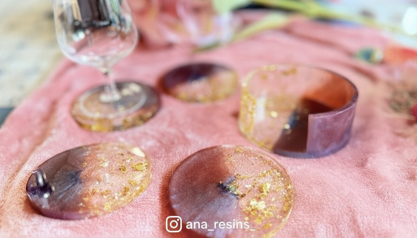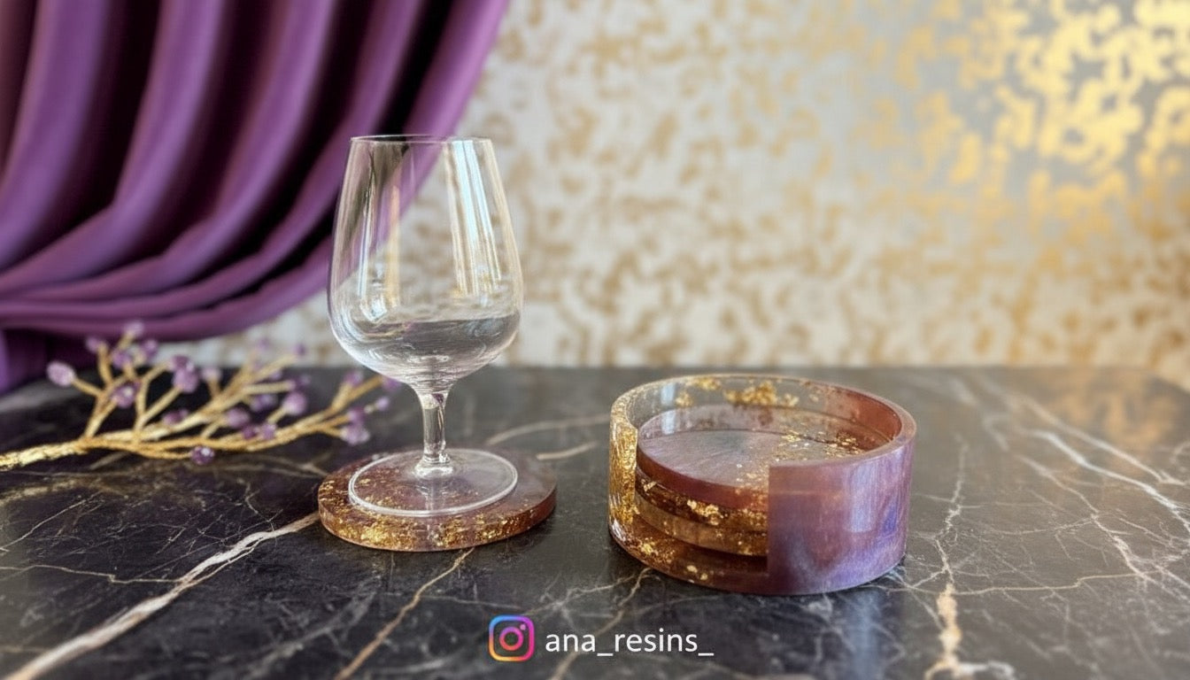 Handgjord set av 4 glasunderlägg i ljus design med guldinlägg