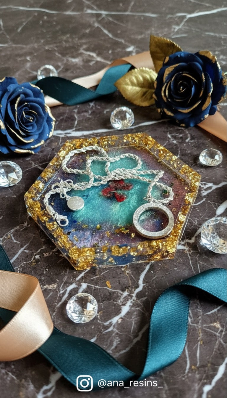 Handgjord Smyckenunderlägg i ljus design mer guldinlägg