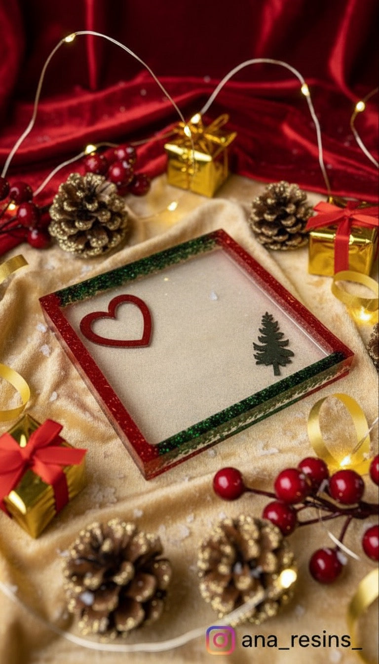 Här är en exklusivt underlägg med elegant placerad mot en lyxig bakgrund med varm julkänsla.