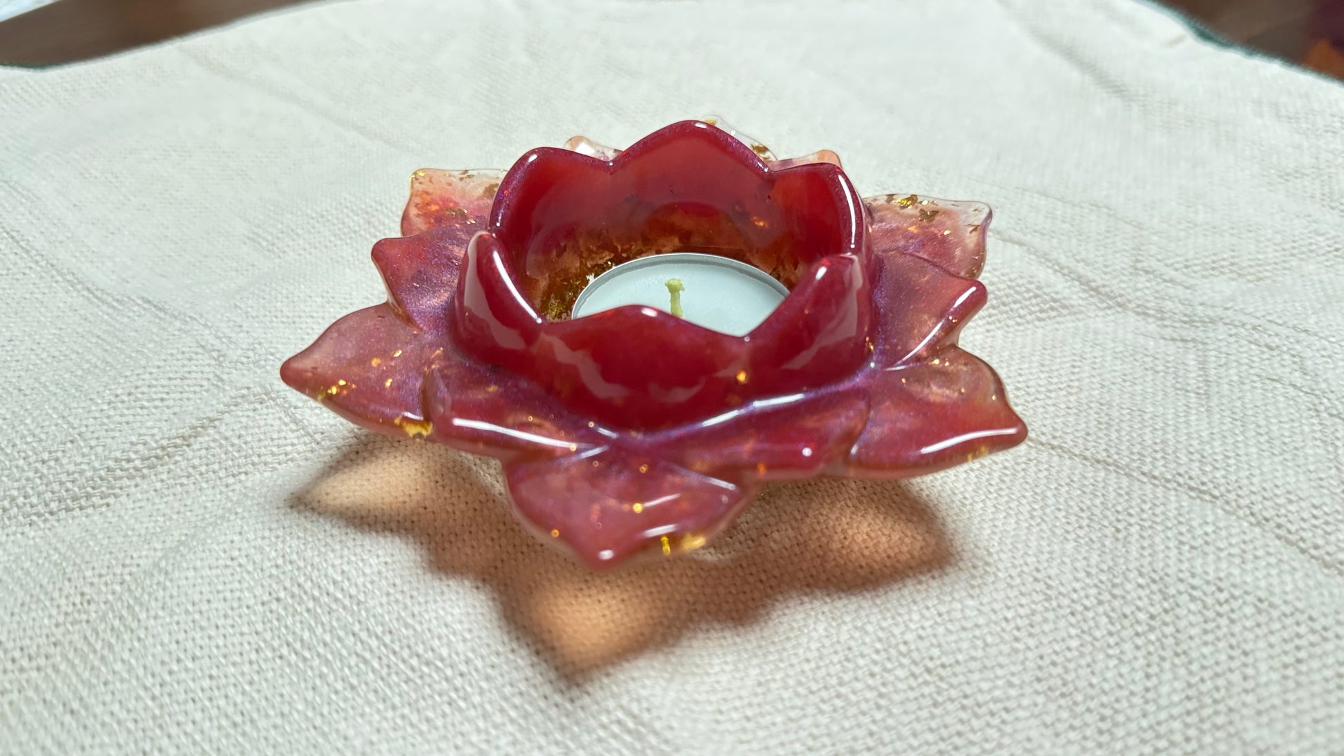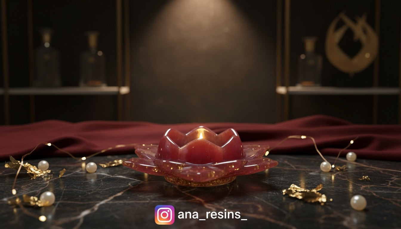 Låt ditt hem lysa med denna exklusiva, handgjorda lotusljushållare i resin. Med sin unika design och lyxiga finish skapar den en varm och elegant atmosfär. Perfekt som en gåva eller för att förhöja din egen inredning.